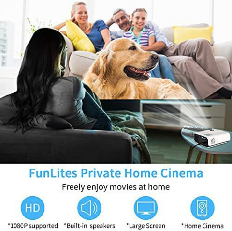 FunLites 4600lux Portable Video Projector, Supported 1080P Outdoor Movie Projector with 200" Display 50,000 Hrs. LED HD Projector Compatible with Fire TV Stick,PS4,HDMI,VGA,AV and USB